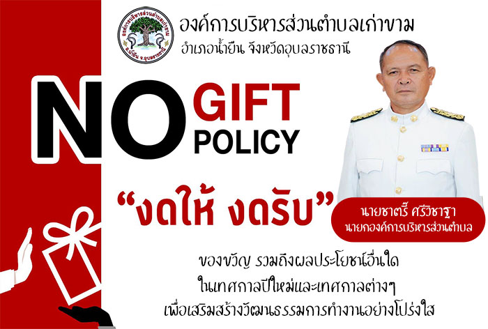 ประกาศเจตนารมณ์นโยบายไม่รับของขวัญและของกำนัลทุกชนิดจากการปฏิบัติหน้าที่ (No Gift Policy) ประจำปีงบประมาณ 2568