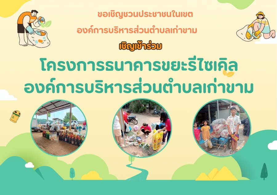เชิญชวนประชาชนในเขตองค์การบริหารส่วนตำบลเก่าขามเข้าร่วมโครงการธนาคารขยะรีไซเคิลฯ