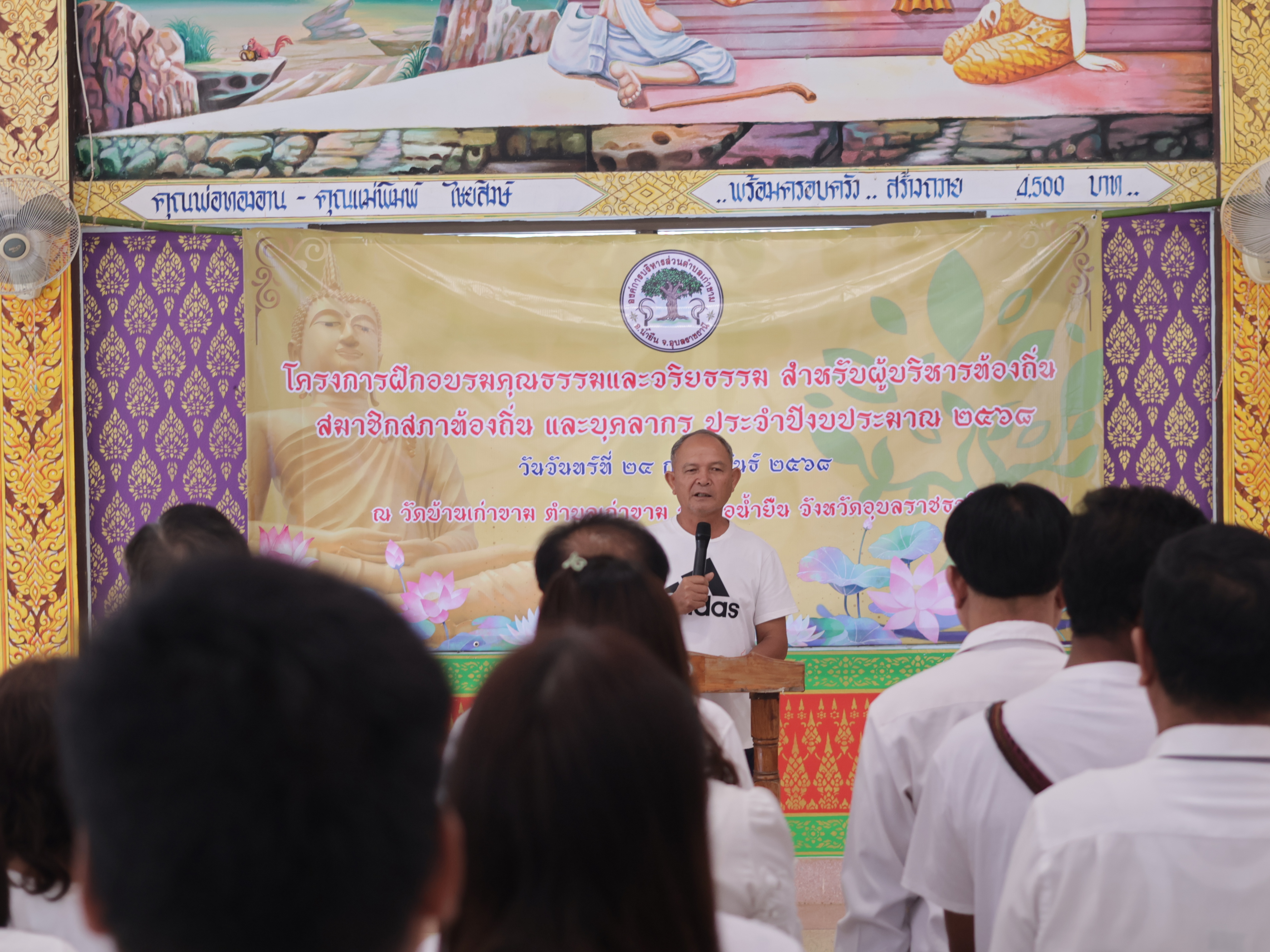 วันที่ 24 กุมภาพันธ์ 2568 นายชาตรี๊ ศรีวิชาฐา นายกองค์การบริหารส่วนตำบลเก่าขาม เป็นประธานเปิดโครงการฝึกอบรมคุณธรรมและจริยธรรม สำหรับผู้บริหารท้องถิ่น สมาชิกสภาท้องถิ่นและบุคลากร ประจำปีงบประมาณ พ.ศ.2568 ณ วัดบ้านเก่าขาม ตำบลเก่าขาม อำเภอน้ำยืน จังหวัดอุบลราชธานี โครงการฝึกอบรมคุณธรรมและจริยธรรม เป็นการปลูกจิตสำนึกให้ผู้บริหาร สมาชิกสภาและพนักงานเจ้าหน้าที่องค์การบริหารส่วนตำบลเก่าขาม มีคุณธรรมจริยธรรมเพื่อนำไปใช้ให้เกิดประโยชน์ในการรับราชการและปฎิบัติหน้าที่รับผิดชอบและได้มีกิจกรรมร่วมกับชุมชน เป็นการทำนุบำรุงพระพุทธศาสนาให้ดำรงอยู่สืบไป
